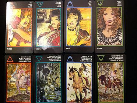 上面四張是四元素的一號牌,下面是四張騎士,這也是我要介紹的第二個特色,那就是這副牌「並沒有」明確的象徵物。